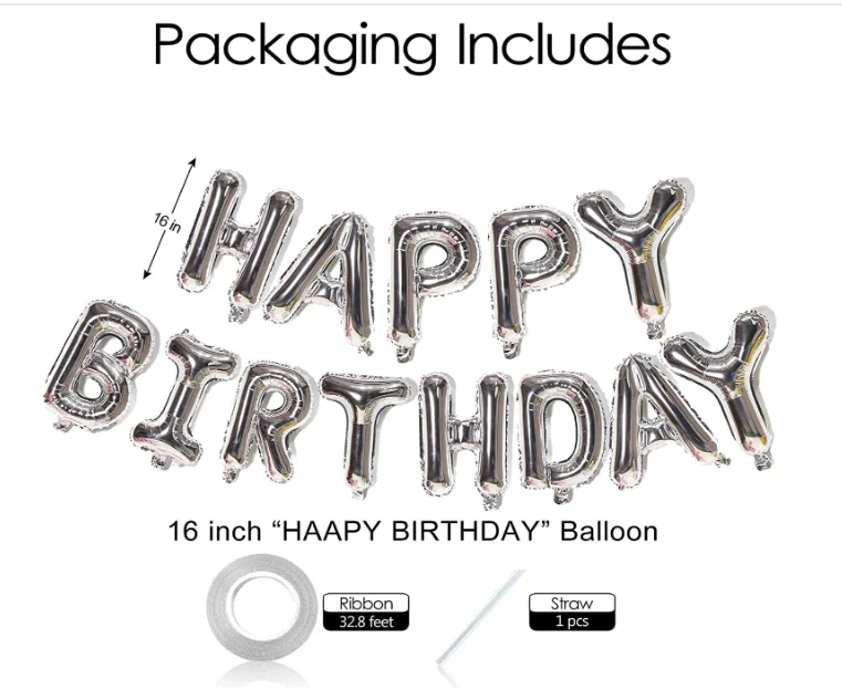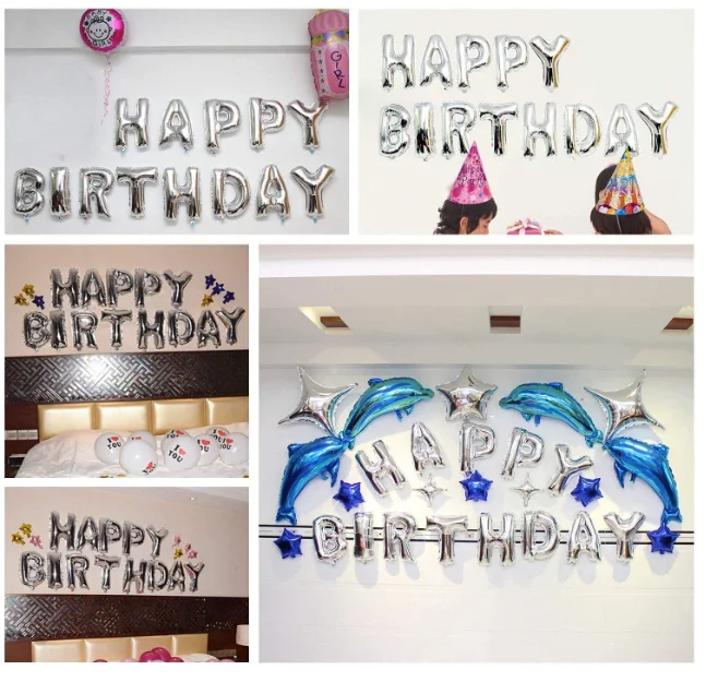 Happy Birthday Letter Foil Balloon Birthday Party Supplies Happy Birthday Balloons for Party Decor/Decoration- SILVER