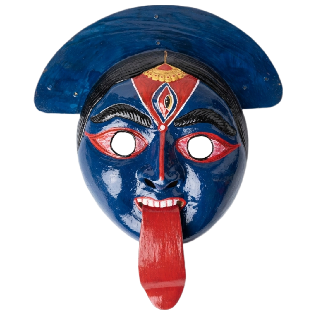 • Ready to Wear / Vibrant Finish: The main Part of the mask arrives pre- Colored with High Contrast pigments or Vibrant Traditional Tones, Featuring the iconic Third eye and extended tongue detail ,ready for immediate display or wear