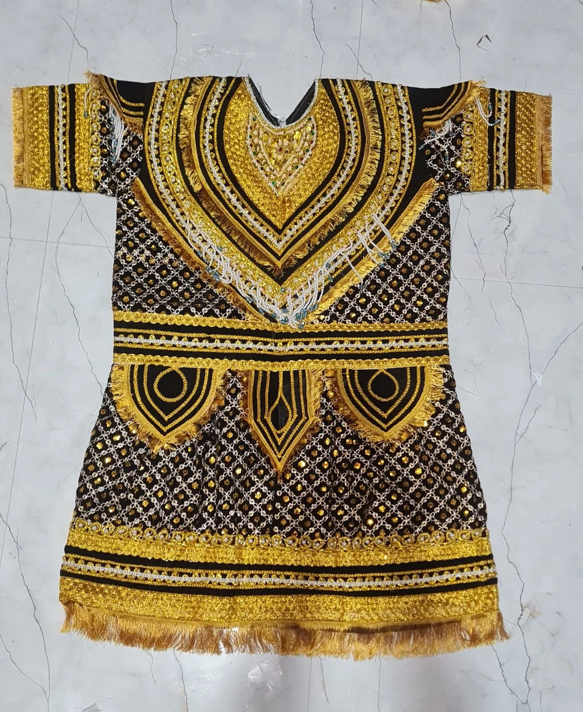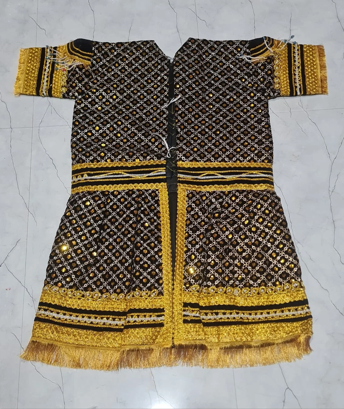 Made from premium shaneel (velvet-like) fabric, this costume features vibrant colors, golden embroidery or borders, and a bold silhouette for maximum stage impact. Its full-size design fits teens and adults comfortably and can be styled differently depending on the character.