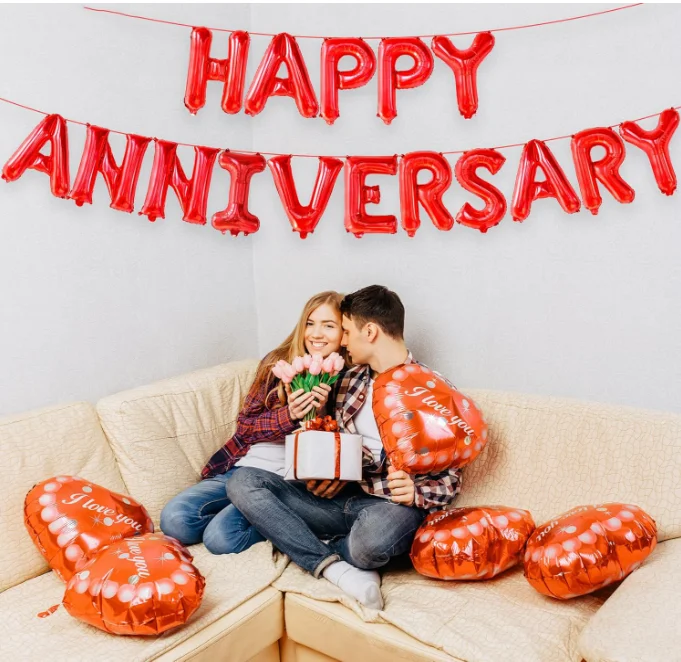 Red Happy Anniversary Balloons Letters – Big, 16 Inch Red Foil Happy Anniversary Sign Banner Party Decoration
