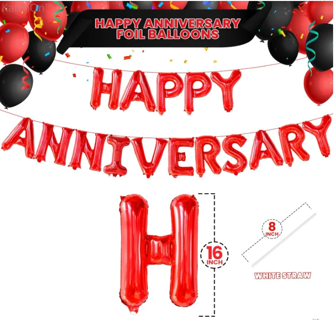 • EASY TO INFLATE – This Happy anniversary balloon pack that comes with 11 pieces Letter . Designed with big 16 inch” foil letters, this happy anniversary sign lets you celebrate special moments with children, friends, and family. The Happy wedding balloons are self sealing, holding air for long time. Add some sparkle to your anniversary celebration with our Happy anniversary ballons.